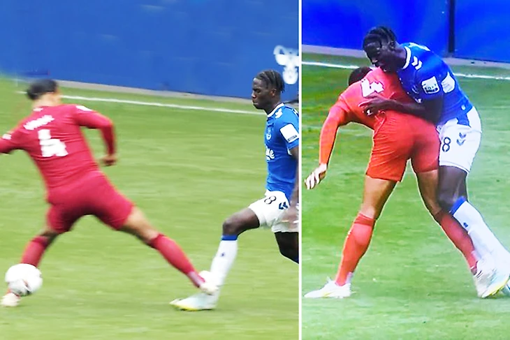 Этот момент проверили по VAR, но было решено, что инцидент был непреднамеренным со стороны защитника «Ливерпуля», и он только сделал выпад, чтобы попытаться отобрать мяч.