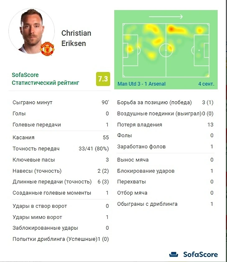 Стоит отметить, что и в прошедшем матче между «МЮ» и «Арсеналом», завершившемся победой на «Олд Траффорд» 3-1, Эриксен тоже отлично проявил себя.