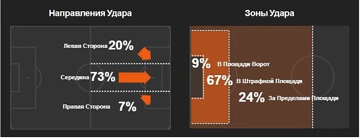 Самый бьющий игрок Парижа – это Килиан Мбаппе с 5.6 ударов за игру в среднем. Следом за ним идёт Лео Месси с показателем 3.8, а тройку замыкает Неймар – 3 выстрела за игру. При этом у Лео самый высокий показатель в дриблинге – 3.8 попыток, следом идет Мбаппе – 2.4, а потом Неймар – 2.2. Безуспешных попыток у Килиана сразу 4, у Неймара 2,6 и Месси меньше всех – 2. К слову, Лео единственный, у кого успешных попыток больше, чем неудач – он и есть самый тот самый опасный игрок, кому нельзя давать никакого пространства. Следует помнить и тот факт, что Мбаппе зачастую вынужден пускаться в дриблинг вблизи ворот соперника и именно с этим связано большое количество потерь. Не забываем также об его излюбленном приеме перед ударом: перенос центра тяжести тела с ноги на ногу, несколько обманных движений и резкое смещение – он это делает регулярно, с подстраховкой его встречают или без (чаще «с»).