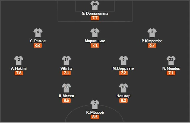 Также нужно отметить самых активных в этом компоненте игроков в каждой команде. У ПСЖ (по убыванию): Верратти, Рамос, Неймар, Кимпембе и Месси;