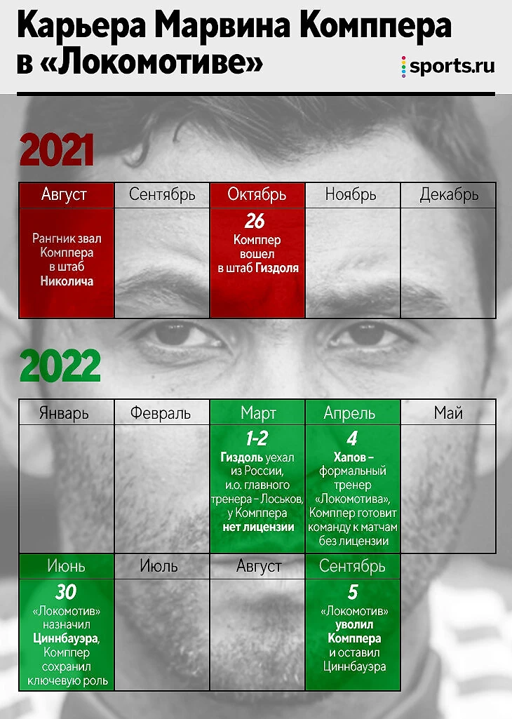 • После мартовского отъезда Маркуса Гиздоля фактическим главным тренером «Локо» стал Комппер – тот поработал тренером-аналитиком в штабе, но не ушел вместе с Маркусом и помощником Лутцем Зибрехтом. Из-за отсутствия лицензии PRO обязанности главного исполнял Дмитрий Лоськов.
