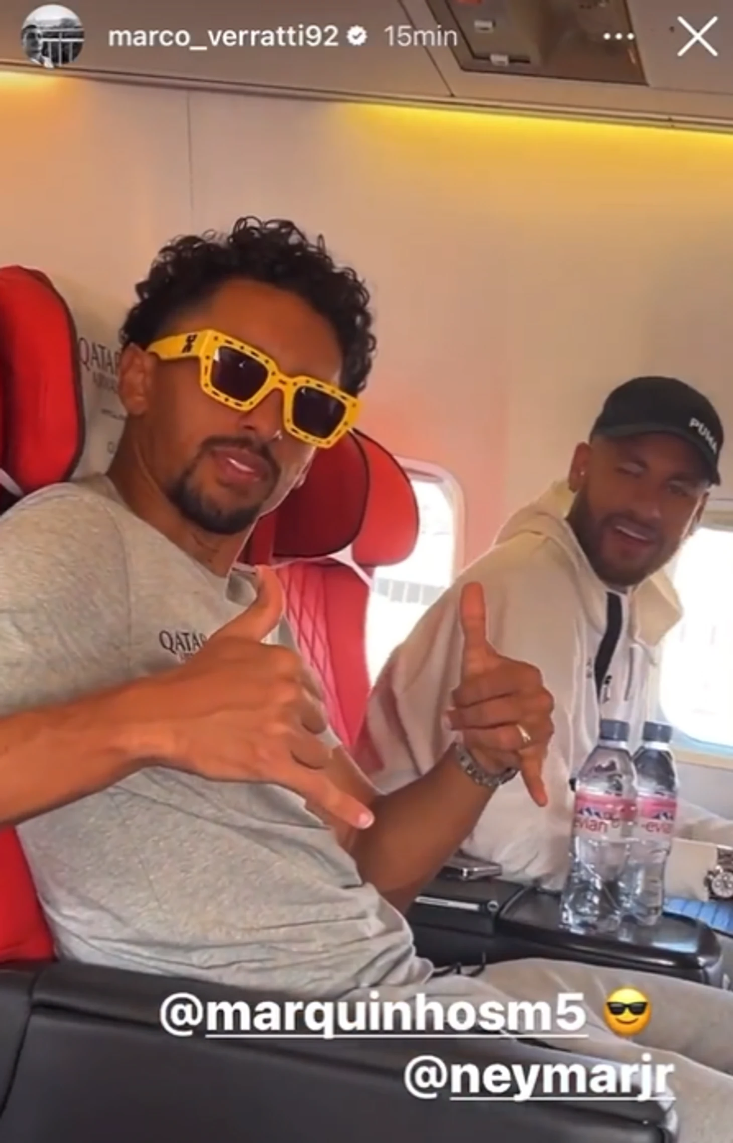 Все началось с безобидного сторис Марко Вератти, который перед вылетом на игру с «Нантом» (3:0) заснял в салоне самолета довольных Неймара и Маркиньоса.