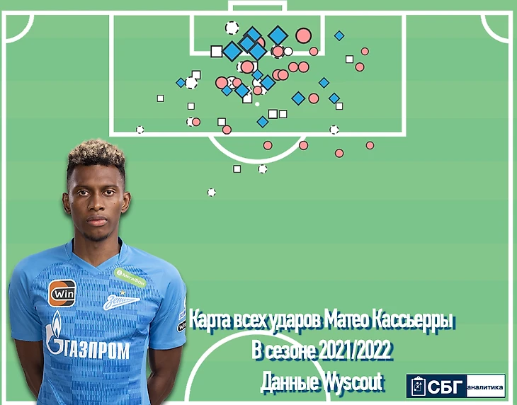 inStat иначе рассчитывает xG, здесь у Кассьерры уже 2,7 и да, он единственный нападающий, кто с подобным весом ожидаемых забитых мячей ни разу не отличился. Виной тому давление. Очевидно, оно растет с каждым матчем. Кроме того, новая команда и необходимость адаптироваться к ней. "Зенит" версии весны 21/22 с пятеркой защитников был сильно ближе к тому футболу, который ставил Федотов в "Сочи", нежели сейчас. А кроме того, сильно влияет специфичность самого Матео, о которой мы говорили выше.