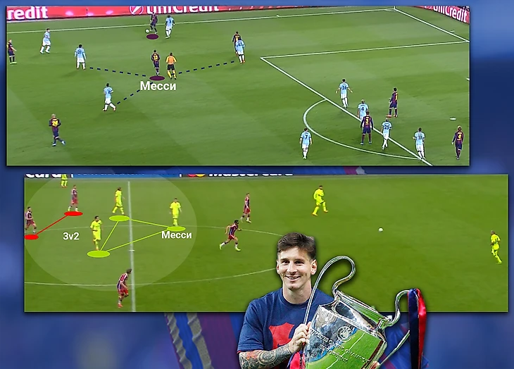 В нападении Лео придерживался нескольким принципам. Он искал пространство в глубине, и получал мяч в момент, когда равноудаленно находился от соперников.