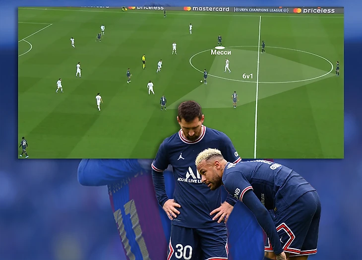 С мячом ПСЖ против Реала действовали не лучше. В первой стадии развития атаки преимущество игроков французского клуба доходило до 6v1! Столько игроков не нужно, чтобы отрезать одного нападающего Мадрида! Футбол в такой ситуации не рационален, ведь адресатов для дальнейшего продвижения очень мало.