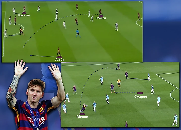 Опускание Месси - тригер для Ивана Ракитича. Если в центре есть численное преимущество или оно наоборот не требуется, то хорват занимает позицию в нападении, тем самым сохраняется структура и рациональность футбола.