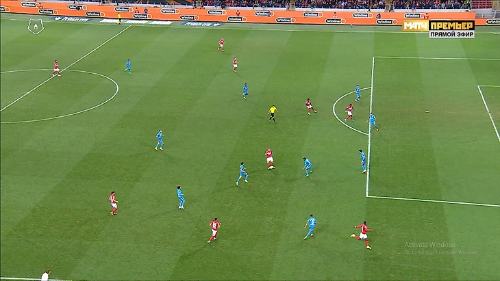 Так на 29-й минуте “Зенит” заработал аут в центре поля, но боковой арбитр допустил явную ошибку, отдав мяч хозяевам. Здесь +4 балла "Спартаку" и -4 "Зениту".