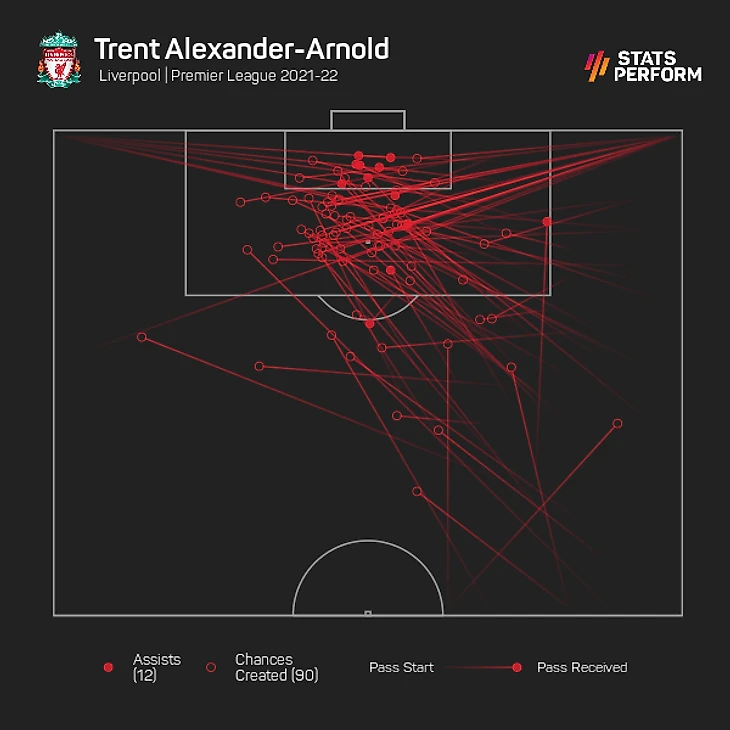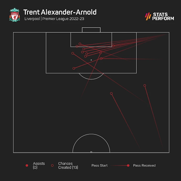 Александер-Арнолд в этом сезоне создал только два момента из последних указанных зон.