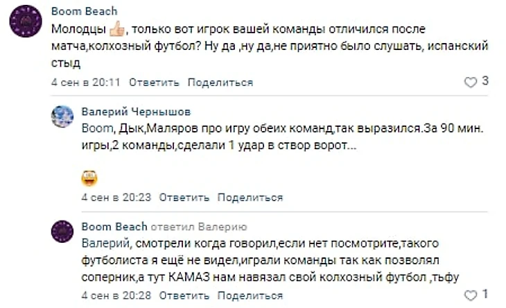 Стоит ли говорить о том, что слова защитника неплохо подожгли аудиторию из автограда? Гневные комментарии были не только на страницах «КАМАЗа», но и на ресурах самого западного клуба страны.