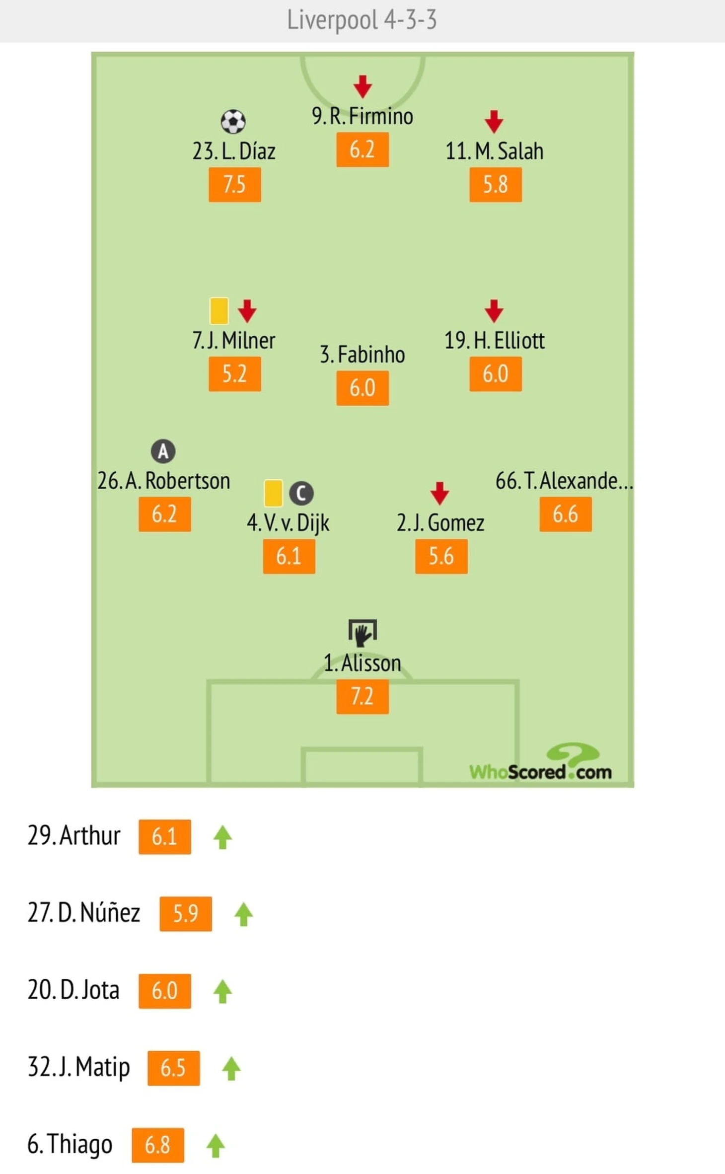 Стоить отметить появление на поле Тьяго после длительного отсутствия и дебют Артура за Ливерпуль.