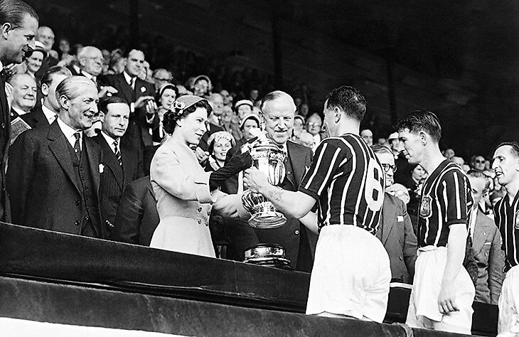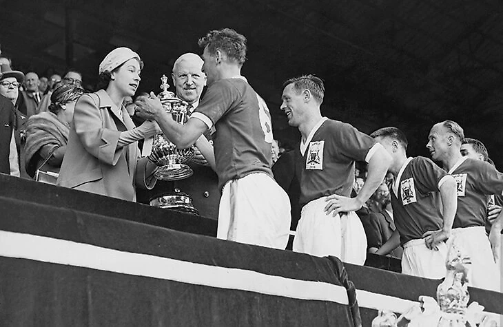 6 мая 1956-го, стадион «Уэмбли». Елизавета II вручает Кубок Англии капитану сборной Уэльса и «Манчестер Сити» Рою Полу.