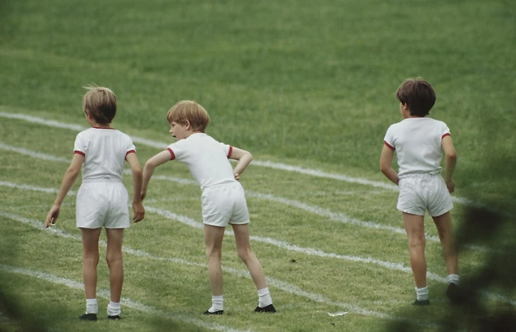 Принц Гарри (по центру) на школьных соревнованиях по бегу. Лондон, 1991 год.