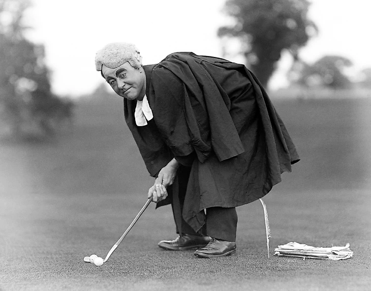 Комедиант Джордж Роби играет в гольф. Великобритания, 1913 год.