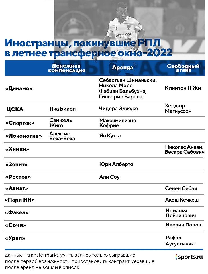 Лето 2022-го изменило привычные тенденции. Клубам крайне сложно найти варианты в Европе для последующей перепродажи. Такой путь был наиболее близок «Локомотиву» (открыто заявляли о стратегии) и «Динамо» (интенсивность Шварца привлекла интерес к Моро, Шиманьскому и Захаряну). В итоге некоторые клубы работали с менее очевидными вариантами.