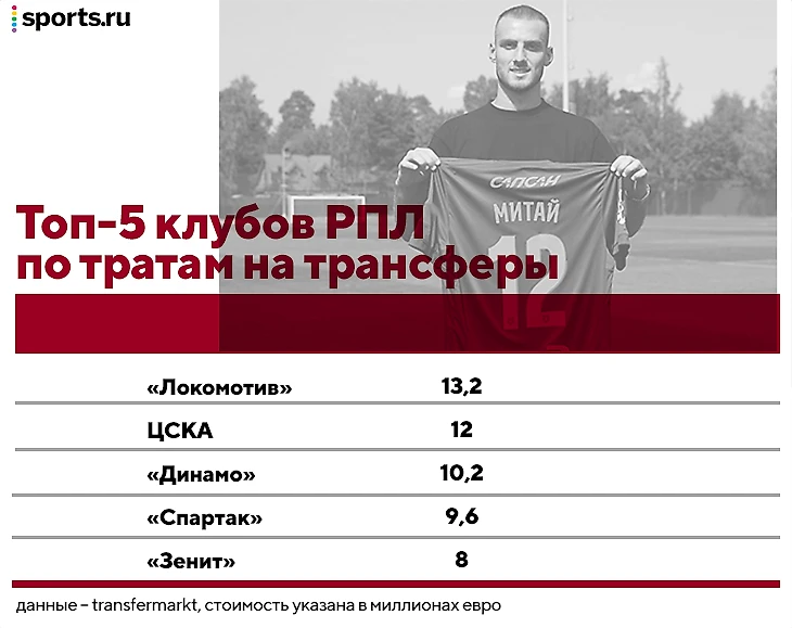 С трансферами на вход все гораздо плотнее: ЦСКА, «Локомотив», «Динамо», «Спартак» – среди самых активных игроков на рынке, они опередили даже «Зенит». Но различия в тратах между большой пятеркой и остальными несущественны: «Краснодар», «Ростов», «Сочи», «Оренбург», «Крылья» уложились в 3-6 миллионов евро.