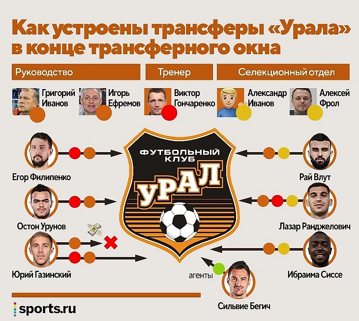 Эти трансферы – работы скаутского отдела, в котором ключевые роли играют Александр Иванов (сын Григория Иванова) и Алексей Фрол. Фрол предложил Гончаренко Ранджеловича, хотя у «Урала» уже был вариант с подписанием Солтмурада Бакаева – и тренер выбрал серба.