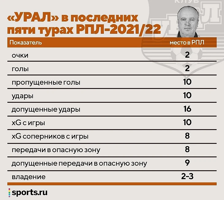 В последних пяти турах сезона-2021/22 «Урал» вышел на нормальные показатели на обеих половинах поля.
