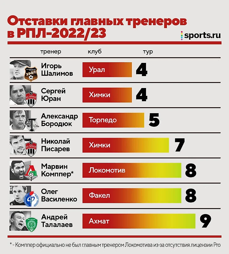 Не прошло и трети сезона РПЛ-2022/23, а мы уже увидели семь увольнений за девять туров. Это рекорд.