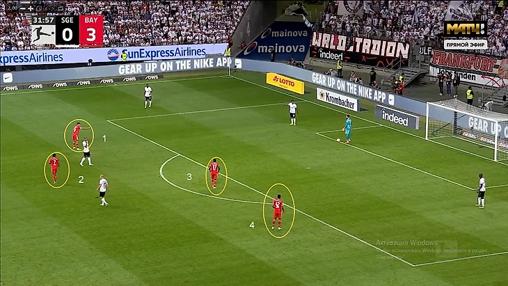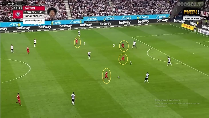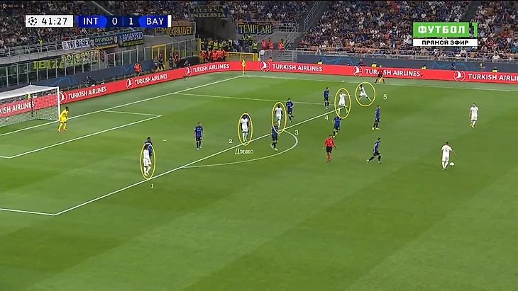 А ведь ещё есть и Альфонсо Дэвис, который регулярно подключается в атаку, создавая пятёрку впереди.