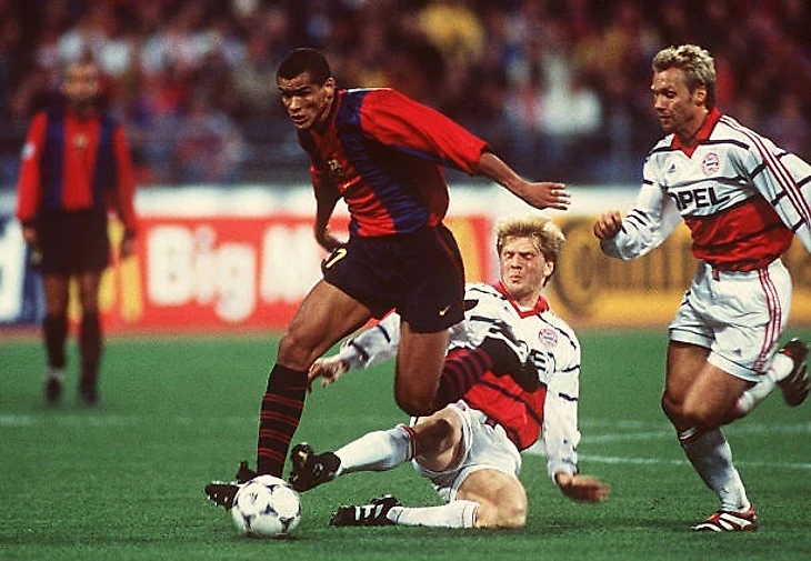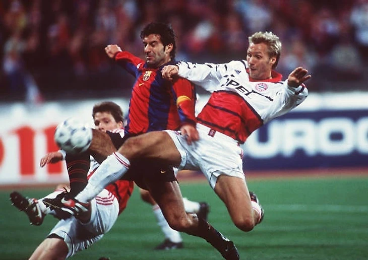 Луиш Фигу с капитанской повязкой, 18-летний Хави, «золотой» Ривалдо, вездесущий Марио Баслер, надежный Оливер Кан. Луи ван Гал против Оттмара Хитцфельда. 24 года назад «Бавария» и «Барселона» попали в «группу смерти».