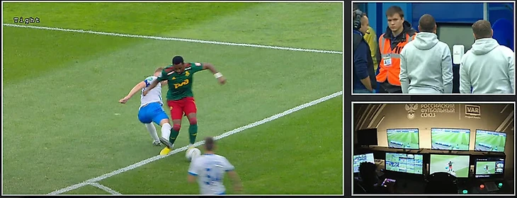 Еще в первом тайме при счете 0:0 возник спорный момент: Брызгалов снес Керка у штрафной, а судья решил, что фол был за пределами. Сначала показалось, что Владислав Безбородов абсолютно прав – но после пары повторов появилось ощущение, что первый контакт все же был на линии штрафной.