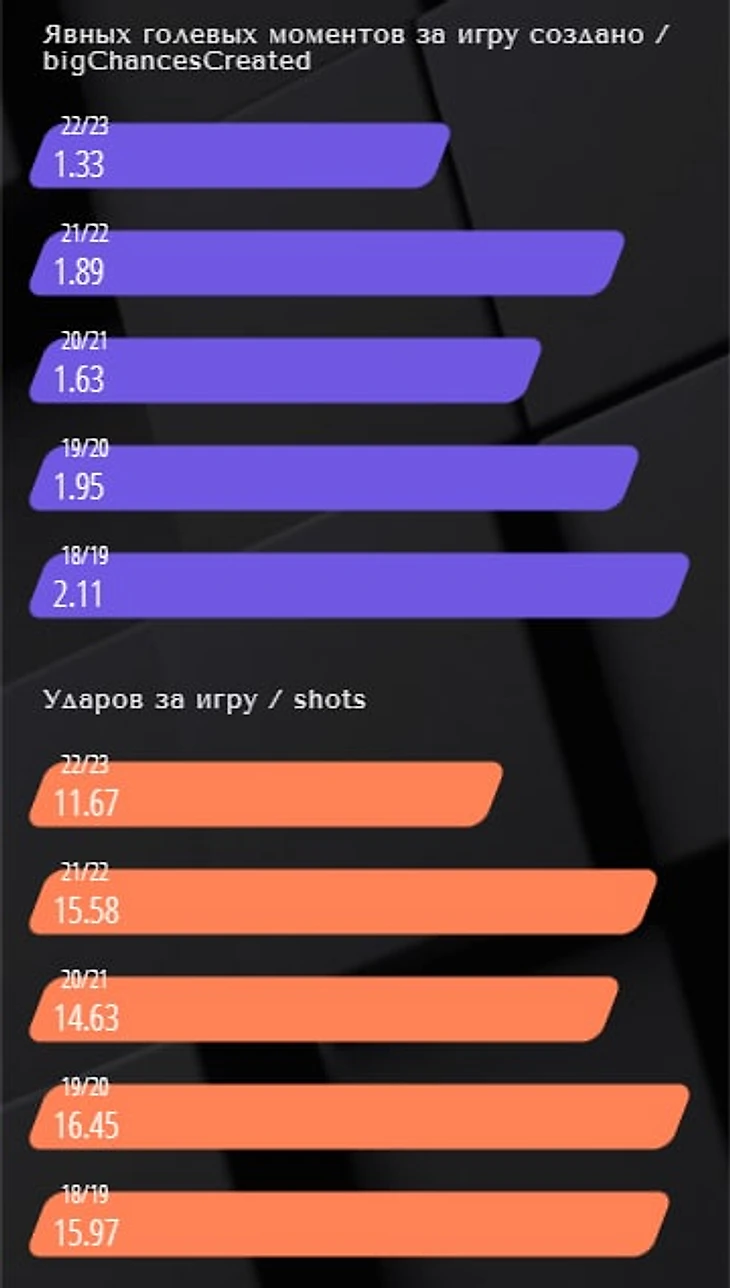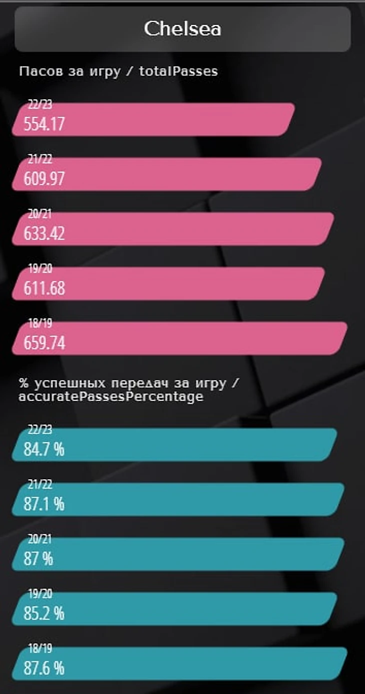 Начало сезона 2022/23 ознаменовался поставленными статистическими антирекордами «Челси» за последнюю пятилетку. Речь идет о показателях передач, созданных моментов и ударов подопечных Тухеля: