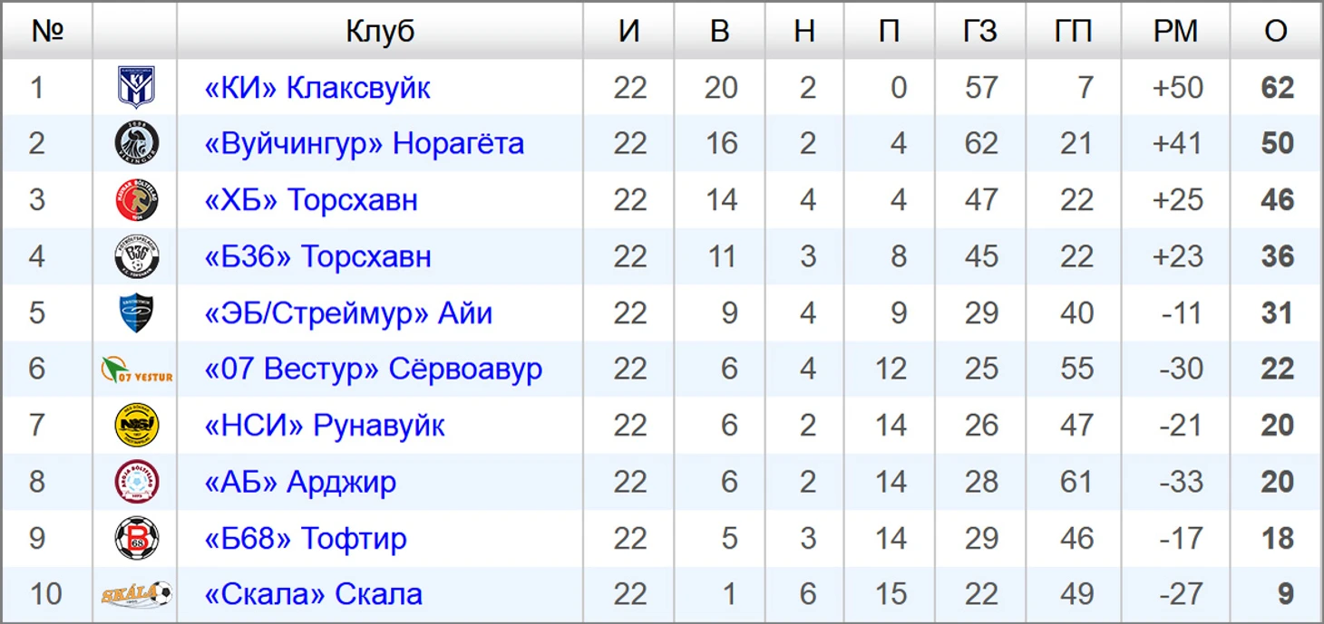 «Вуйчингур» Норагёта – «КИ» Клаксвуйк – 1:2 (0:0) Голы: Йохансен (49) – Йоэнсен (51), Фредериксберг (77)