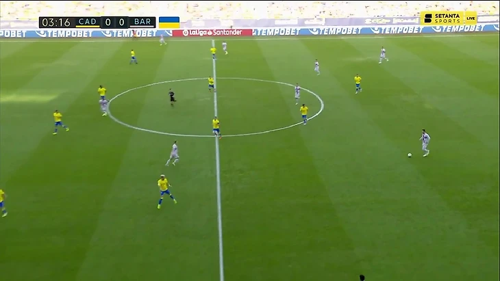 В первом тайме «Кадис» старался высоко встречать «Барселону» при розыгрышах от ворот. В такие моменты один из полузащитников поднимался повыше (обычно это был Эметеро), чтобы оказать давление на Бускетса: