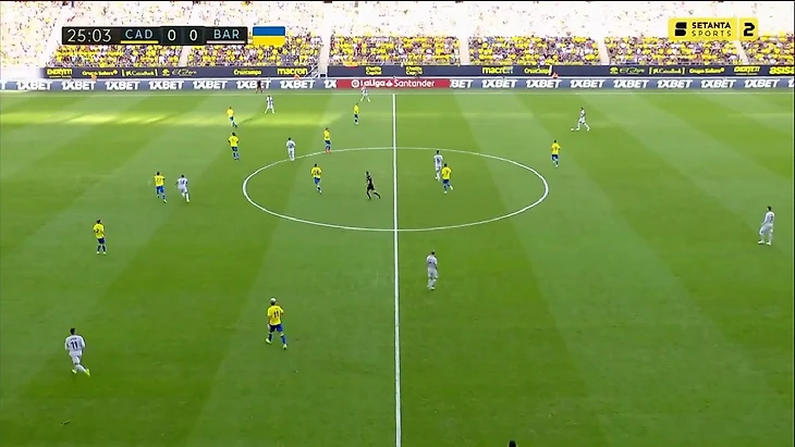 Да, «Барса» не создала много моментов в первом тайме, но это скорее следствие не самого основного состава + вышли играть в полсилы. При всём уважении к «Кадису», ещё в первом тайме были потенциально опасные эпизоды у их штрафной, только финальные решения игроков «Барсы» были не самыми правильными.