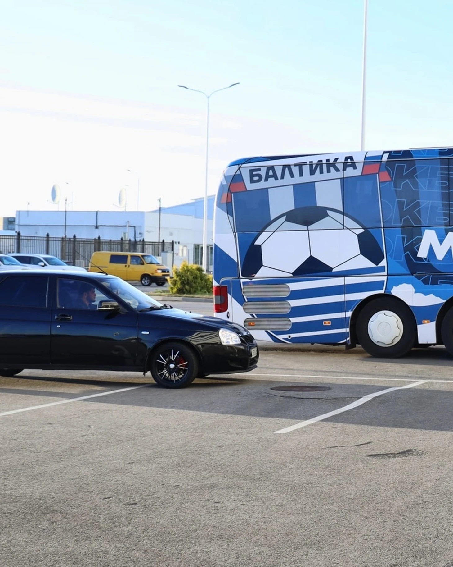 Немного улеглись страсти после очередного домашнего матча калининградской "Балтики", которая накануне вечером сыграли в ничью с махачкалинским "Динамо" (1:1). В этом матче было все: голы, пенальти, удаления и отмененные голы. Но я бы хотелось рассказать Вам об очередном креативе от балтийских медийщиков. Все началось с приезда команд на стадион. Оба автобуса сопровождали тонированные автомобили отечественного производства, а именно "Лады Приоры". Выглядело это весьма колоритно.