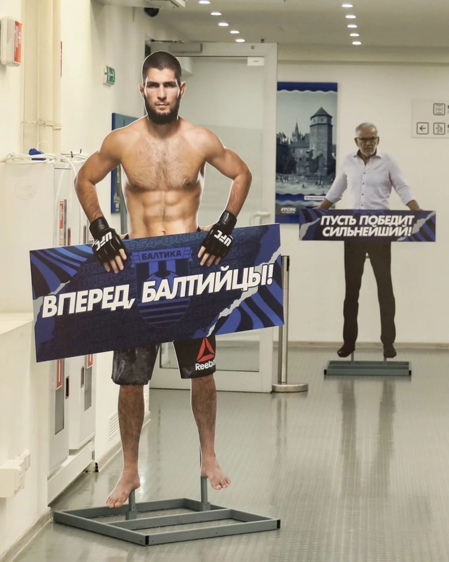 При входе на стадион команду гостей встречали фигуры знаменитых людей связанных с Дагестаном. Первым был Хабиб Нурмагомедов, за ним следовала Елена Исинбаева и завершал эту тройку Гаджи Муслимович Гаджиев. У каждого из перечисленных была табличка с определенным посылом.