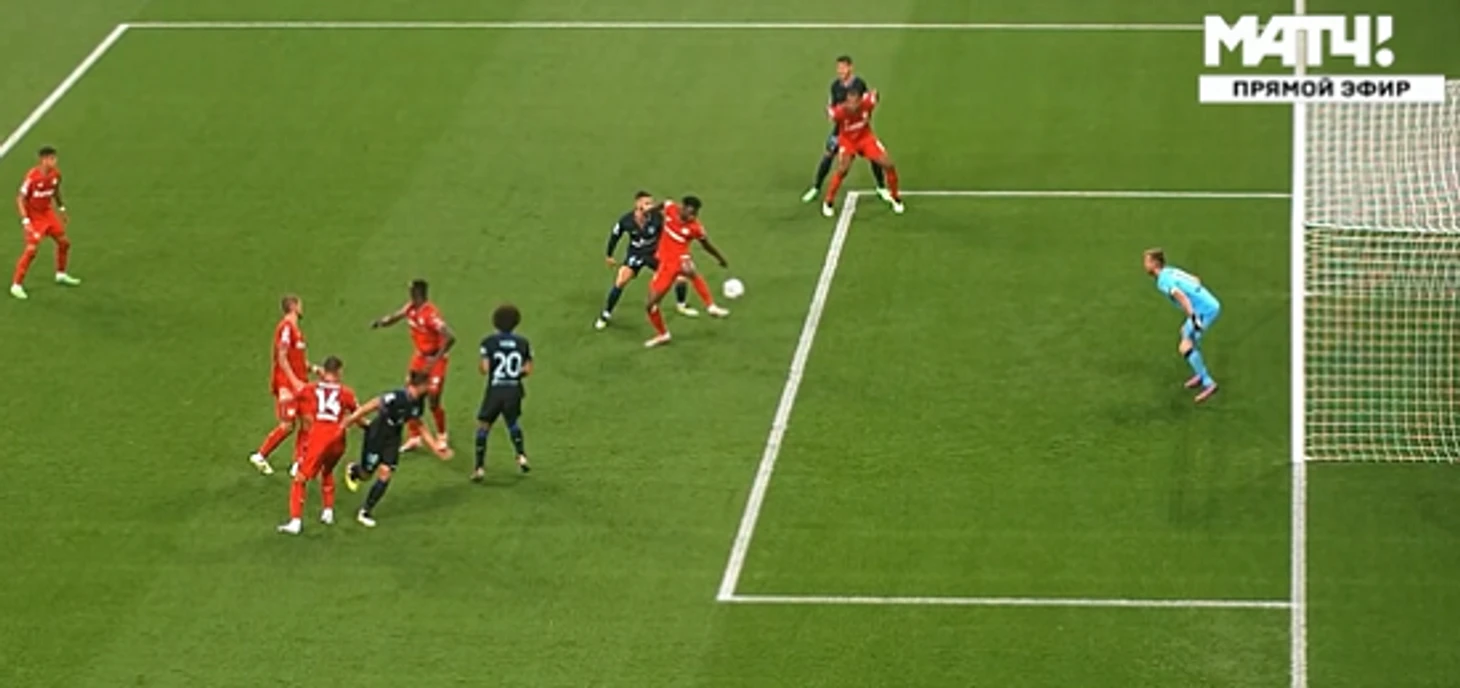 Речь о моменте из первого тайма: тогда мяч прокатился по руке защитника леверкузенцев Эдмонда Тапсоба, но судьи после просмотра ВАР решили не назначать пенальти.