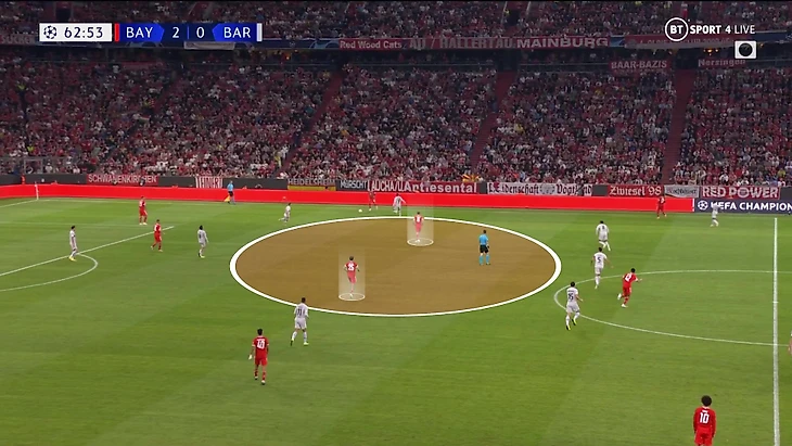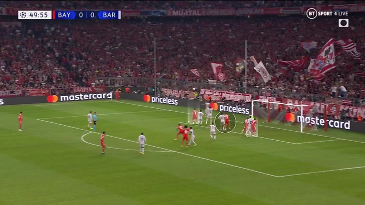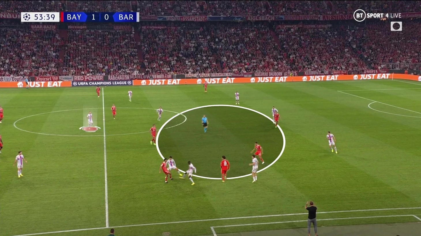 Этот гол и последовавший за ним второй трансформировали рисунок встречи. Теперь «Бавария» могла меньше разыгрывать и идти в собственный прессинг (стадии, в которых был перевес «Барсы» в первом тайме). Теперь хозяева могли обороняться в среднем блоке и использовать пространство в быстрых атаках: