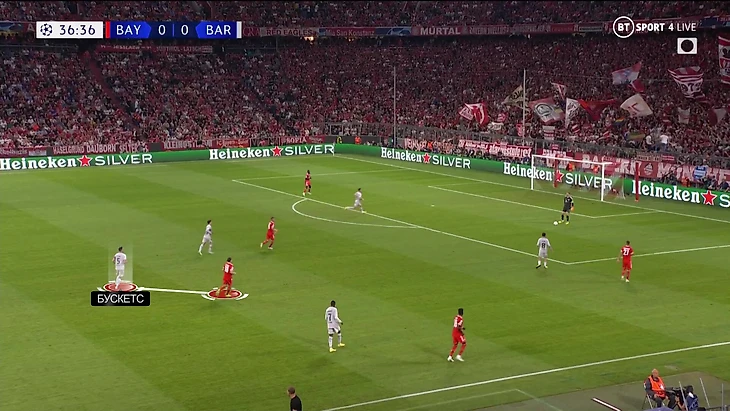 Возможно, самым ярким стал эпизод со вторым голом. Бускетс оказался рядом с Левандовским и требовал начала прессинга: