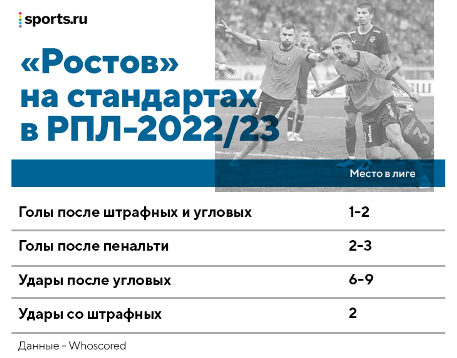 После третьего тура «Ростов» не забивал после штрафных и угловых, но все равно конвертировал подачи в опасные моменты: заработал пенальти с «Пари НН» и «Торпедо», а также отыгрался в матче против «Сочи» (Мещанинов срезал после подачи Уткина).