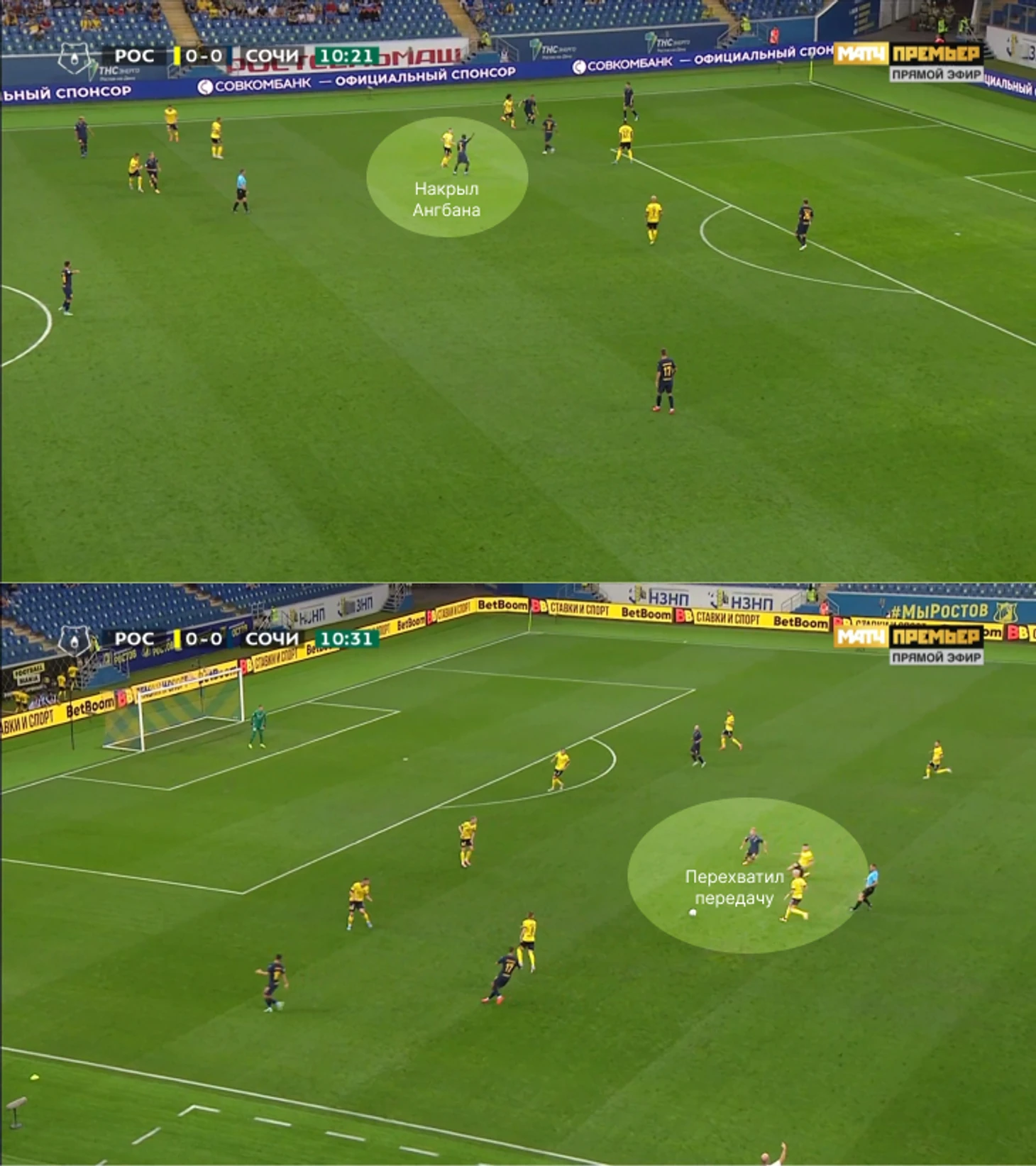 План провалился благодаря классной работе «Ростова» в опорной зоне москвичей – Комличенко выигрывал борьбу, а полузащитники опережали Умярова на подборах. «Ростов» регулярно создавал моменты через середину: Полоз сравнял после комбинации с Комличенко и Тугаревым, стартовая фаза атаки перед вторым голом – перевод на свободный фланг, начало третьей атаки – выигранная борьба Комличенко и готовый к подбору Уткин.