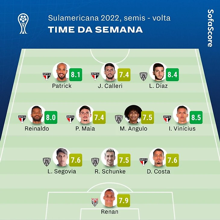 "Сан Пауло": Фелипе Алвес – Игор Винисиус, Диего Коста, Лео, Рейналдо – Алиссон (Галоппо, 80), Невес (Пабло Майя, 17), Родриго Нестор (Таллес, 79), Патрик (Жуан, 88) – Кальери, Лусиано.
