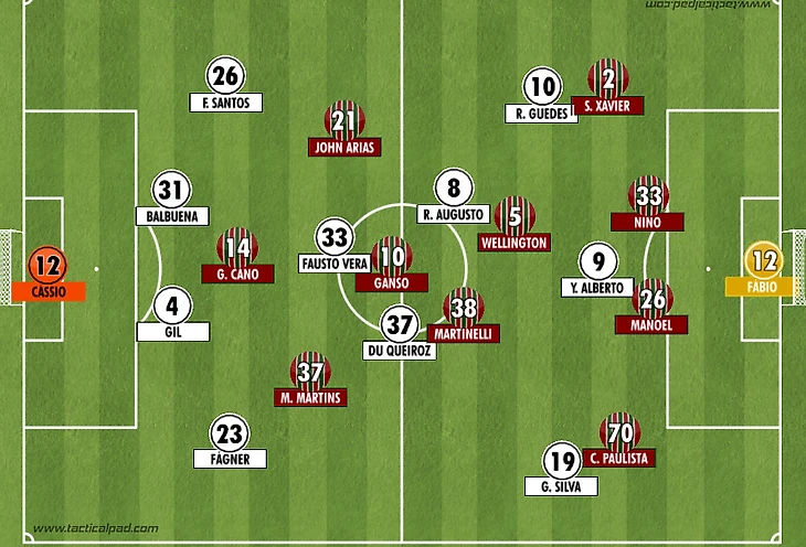 "Атлетико Гояненсе": Ренан – Дуду (Айнер, 72), Вандерсон, Клаус, Джефферсон – Габриэл Баральяс, Эдсон Фернандо (Шайлон, 87) – Марлон Фрейтас, Жоржиньо (Лео Перейра, 57), Веллингтон Райо ,87)