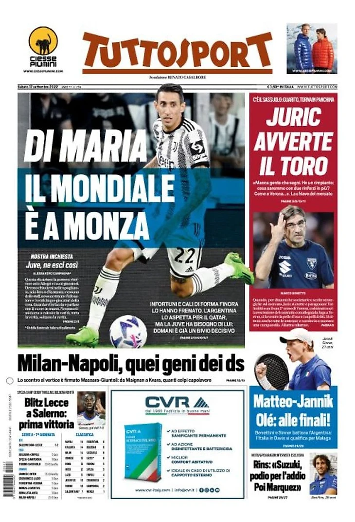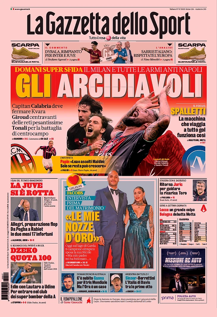 Архидьяволы. Заголовки Gazzetta, TuttoSport и Corriere за 17 сентября