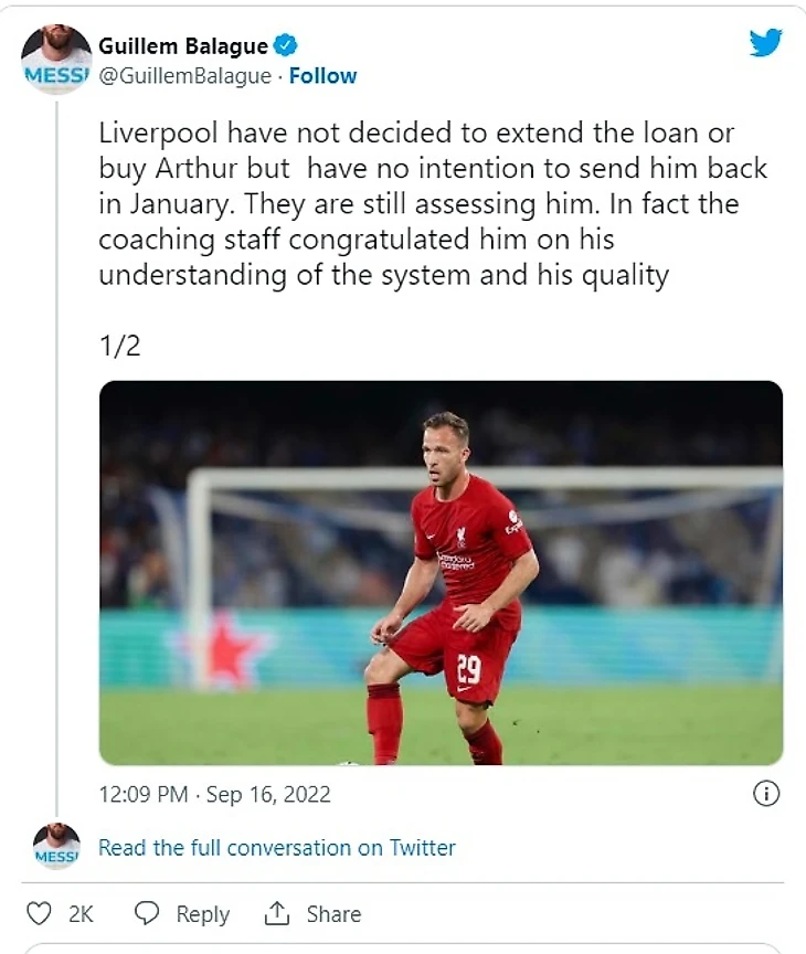 «Ливерпуль» не принял решения продлить аренду или выкупить Артура, но у них нет намерения возвращать его в январе. В клубе продолжают оценивать его».
