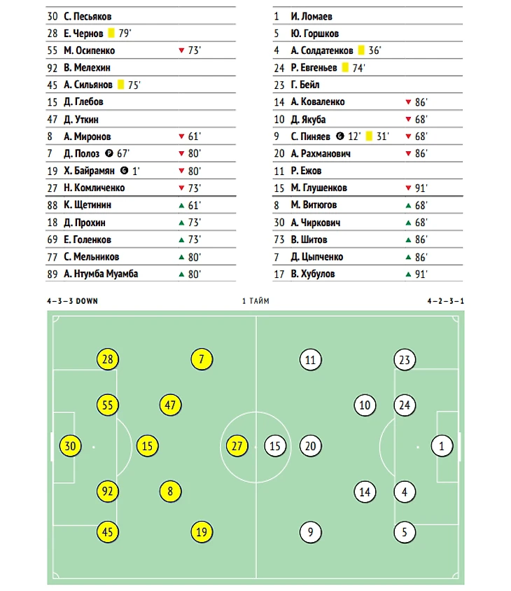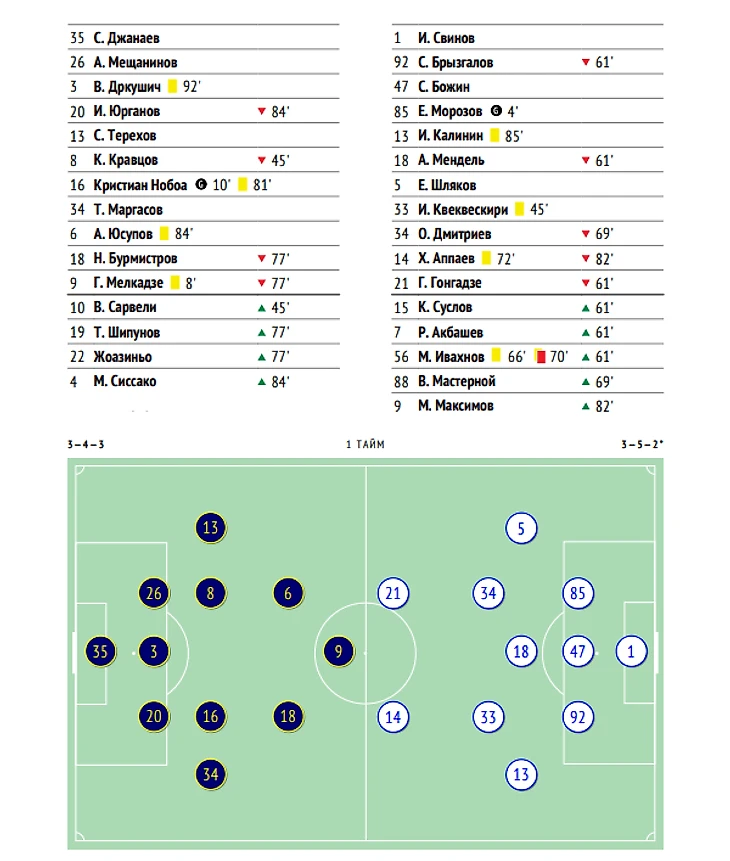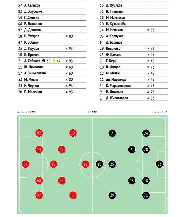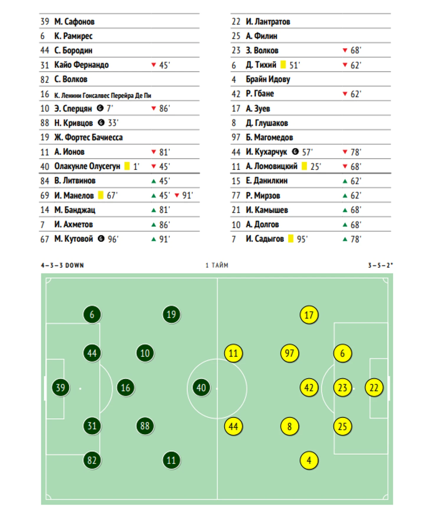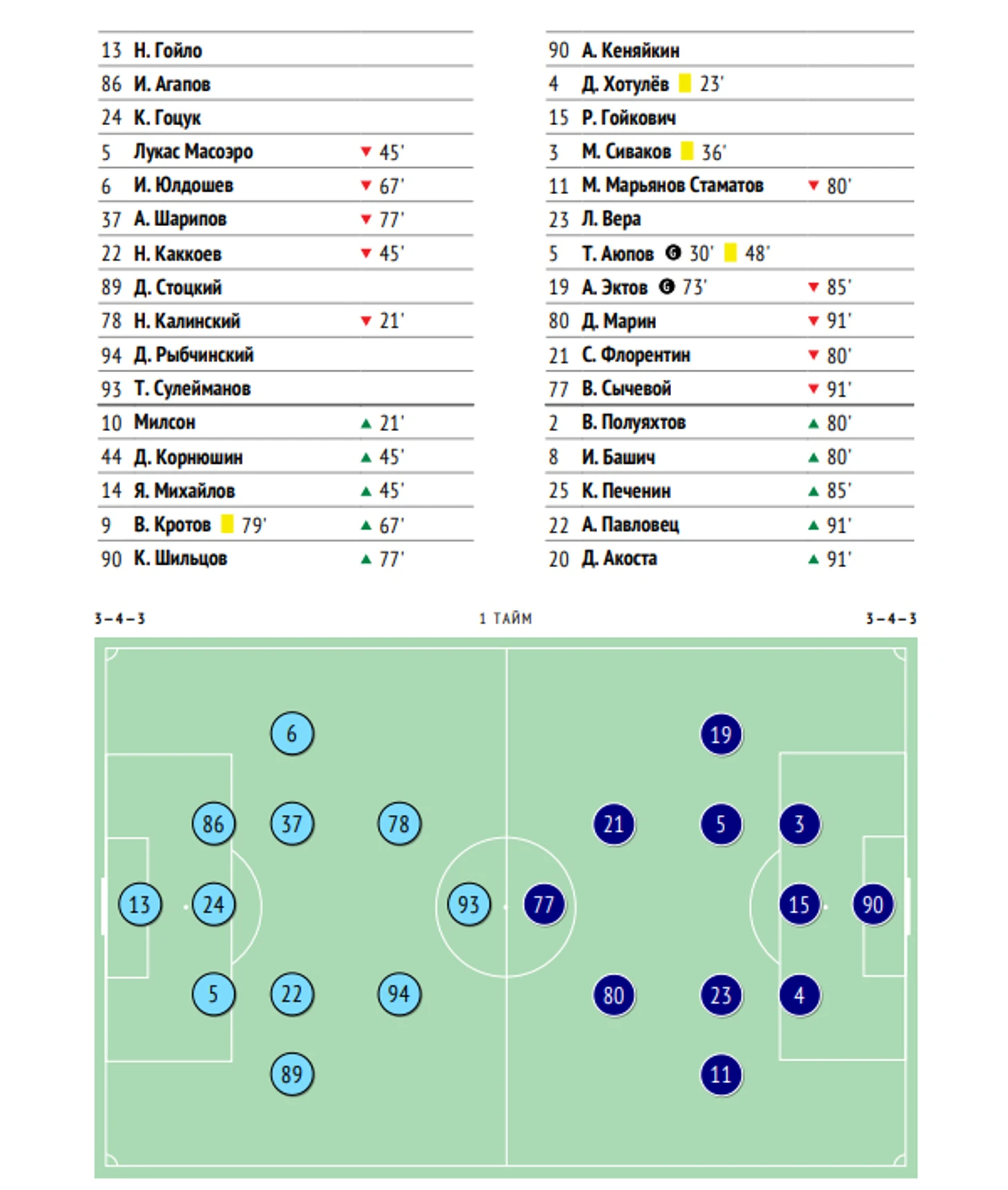 Команда Марцела Лички довольно неожиданно заработала три очка в Нижнем Новгороде. Хозяева провели крайне неудачный матч. По ходу первого тайма они потеряли из-за травмы лидера своей полузащиты Калинского, и в его отсутствие нижегородцы столкнулись с огромными проблемами в выстраивании атакующих действий и исполнении стандартных положений. По-настоящему опасных моментов коллективу Михаила Галактионова удалось создать минимум. Гости же в нападении действовали весьма изобретательно и дважды поразили ворота Гойло. В первом тайме Аюпов воспользовался передачей Веры, а во второй сорокапятиминутке аргентинец ассистировал Эктову.
