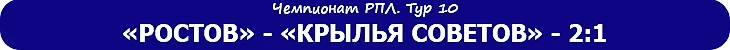 🕮 Факты: ◉ «Ростов» наряду с «Зенитом» остаётся одной из двух команд РПЛ, еще не познавших в этом чемпионате горечи поражения. ◉ «Ростов» прошел первые 10 туров сезона без поражений, набрав 22 очка - это лучший старт ростовчан в чемпионате России за всю их историю. Кроме того, «Ростов» повторил свою рекордную беспроигрышную серию в РПЛ (также 10 матчей подряд без поражений было у него в сезоне-2016/17). ◉ На своём поле в РПЛ у «Ростова» серия из десяти матчей без поражений, восемь из которых он выиграл. ◉ «Ростов» остаётся единственной командой чемпионата, еще не проигравшей ни одного отдельно взятого второго тайма. ◉ «Ростов» пробил уже восемь пенальти в текущем сезоне - больше всех в лиге, за весь прошлый сезон ростовчане пробили 10 пенальти. Ростовчанин Хорен Байрамян забил самый быстрый гол в РПЛ за последние два сезона. Он отправил мяч в ворота «Крыльев Советов» уже на 45-й секундеигры. ◉ У «Крыльев Советов» в последних девяти матчах лишь одна победа. ◉ «Крыльям Советов» лишь в одном матче из 14 последних удалось сыграть в обороне на ноль.
