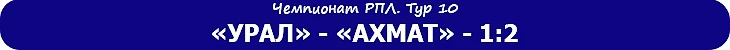 «Урал» Екатеринбург – «Ахмат» Грозный – 1:2 17.09.2022 (суббота). Начало – 12:00 мск (14:00). Екатеринбург. Стадион «Екатеринбург Арена». 2888 зрителей. Голы: 0:1 Харин (38), 1:1 Быковский (85), Бериша (90+1).