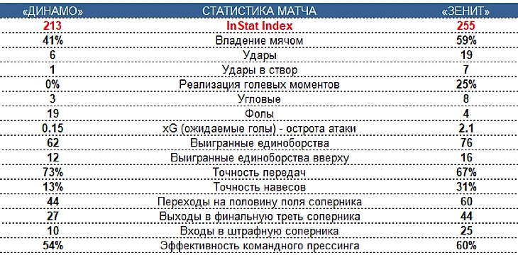 🕮 Факты: ◉ На протяжении последних девяти домашних матчей РПЛ против «Зенита» «Динамо» не забивало более одного мяча. ◉ «Зенит» выиграл шесть матчей подряд в РПЛ с общим счетом 20:2, а также продлил свою беспроигрышную серию против московских клубов без учета фактора поля до 19 матчей (14 побед, 5 ничьих). ◉ В Москве «Зенит» не проигрывает девять матчей РПЛ. Последней командой, которой питерцы уступили в российской столице в матче чемпионата России, было «Динамо», обыгравшее «Зенит» 1:0 в августе 2020 года. ◉ Зенитовец Андрей Мостовой отметился результативным действием в четвертом матче РПЛ подряд (3 гола и 1 передача) - это повторение его лучшей серии в чемпионате России. Также у Мостового было четыре матча подряд с голевыми действиями в 2020 году, когда он выступал за «Сочи».