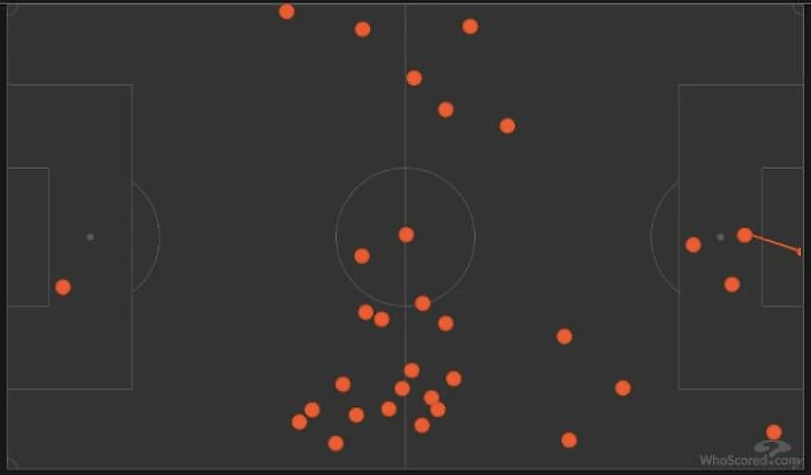 Карта касаний Соболева с «Локомотивом» выглядела ожидаемо, учитывая его позицию.