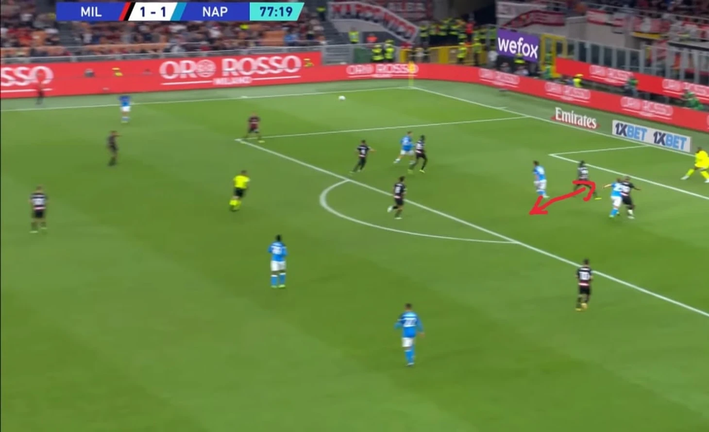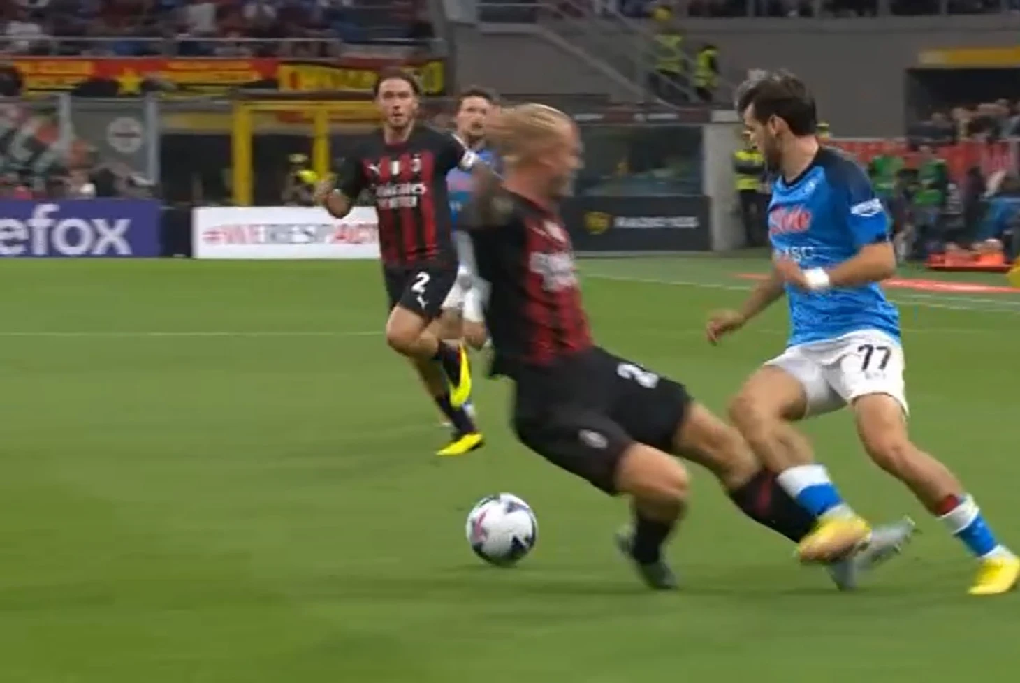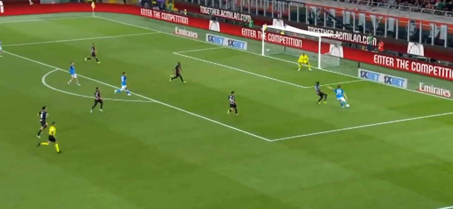 Желание Пиоли заменить Леау сказалось на перемещениях не только Тео, но и остальных игроков: непонятна была роль Калабрии. Он несомненно здорово играл против Кварацхелии ближе к центру поля, правда, получил ненужную желтую карточку. Проблема в том, что когда у Хвичи получалось пройти дальше, его встречал Кьяер, а вот это уже было грустно. Когда датчанину помогал Беннасер, у них вдвоем получалось закрыть правый фланг, но потом алжирец это дело бросил, решив попробовать что-то новое. Злость и обиду Кьяера на Беннасера можно увидеть в этом ударе по ногам: