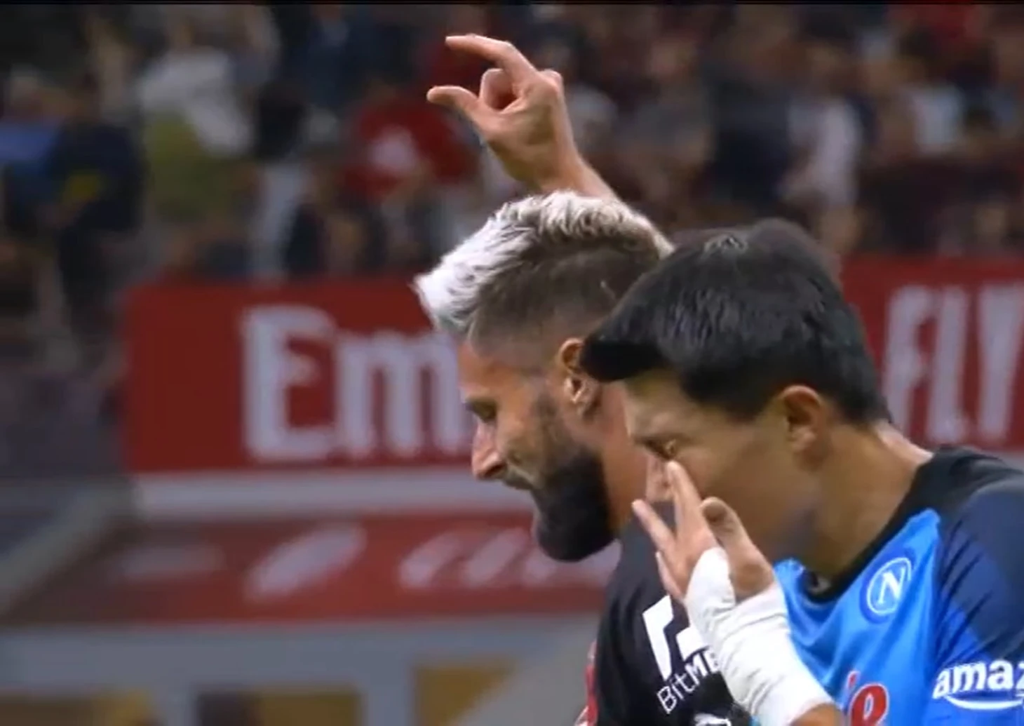 Жест явно не отражает реального качества его ударов, почему игрок Наполи и закрыл лицо, лишь бы не видеть этого стыда.