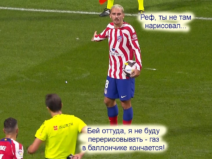 В воскресенье, впрочем, «Бетис» хоть и не без труда, но сместил баскский клуб с "бронзовой" ступеньки пьедестала, обграв дома «Жирону» 2:1. А главная встреча тура — мадридское дерби на «Ванда Метрополитано» между «Атлетико» и «Реалом» игралась самой последней. Хозяева начали с психологического прессинга, и примерно минут 10 футбола на поле не было. Были падения, возмущения, апелляции к арбитру, симуляции — любители «антифутбола» много потеряли, если пропустили начало этой встречи. Довольно удивительно, но факт - этот стартовый отрезок обошёлся без предупреждений. Игра наладилась, и «матрасники», казалось, захватили инициативу — опасность поначалу возникала только у ворот Куртуа, который, как обычно, был на высоте. В отличие от всех предыдущих матчей «сливочных» в этом сезоне, ему даже удалось в первом тайме сохранить свои ворота на замке. А первая же серьёзная вылазка к воротам Облака закончилась голом — Вальверде в центре разогнал атаку, отдал налево Менди, оттуда мяч через Родриго пришёл к Чуамени, а сменщик Каземиро, отрезав всю оборону хозяев, сделал суперпас в штрафную на того же Родриго, который в касание вогнал мяч в ближний угол. Шансов у словенского голкипера на спасение не было никаких. Почти тут же Гризманн опасно пробил в створ, предоставив очередную возможность голкиперу сборной Бельгии продемонстрировать своё мастерство. И на этом атаки хозяев в первом тайме в целом завершились. Игра, вроде бы, успокоилась, но на 36-й минуте Виниссиус с Модричем разыграли «стенку» слева, и бразилец пронёсся к воротам и пнул мяч в ближнюю штангу. Облак мяча коснулся, но остановить не сумел, и футбольный снаряд от стойки отскочил прямо на набежавшего Вальверде. Учитывая то, что чемпионы в этом сезоне больше одного мяча в игре ещё не пропускали, это была серьёзная заявка на победу. И в самом деле, подопечные Анчелотти практически зацементировали свою оборону, и до самого конца матча успешно отражали атаки хозяев. «Атлетико», конечно, не сдался на милость сопернику, и давление на ворота Куртуа оказывать продолжал, но оборона «Реала» ошибок не совершала, и до явных голевых моментов дело не доходило. Впрочем, когда до конца встречи оставалось уже меньше 10 минут, мяч всё-таки залетел в ворота гостей от «разрешённой части» руки Эрмосо, и интрига в этом противостоянии возродилась. Но вскоре автор ответного мяча, сначала отправившись добывать вторую жёлтую карточку для Карвахаля, заработал первую для себя, а затем в противоборстве с Себальосом стал жертвой симуляции соперника, и немного досрочно сам отправился отдыхать в подтрибунное помещение. «Реал» выиграл очередной матч в сезоне и продолжает сохранять «ноль» не только в графе «поражения», но и в графе «ничьи».