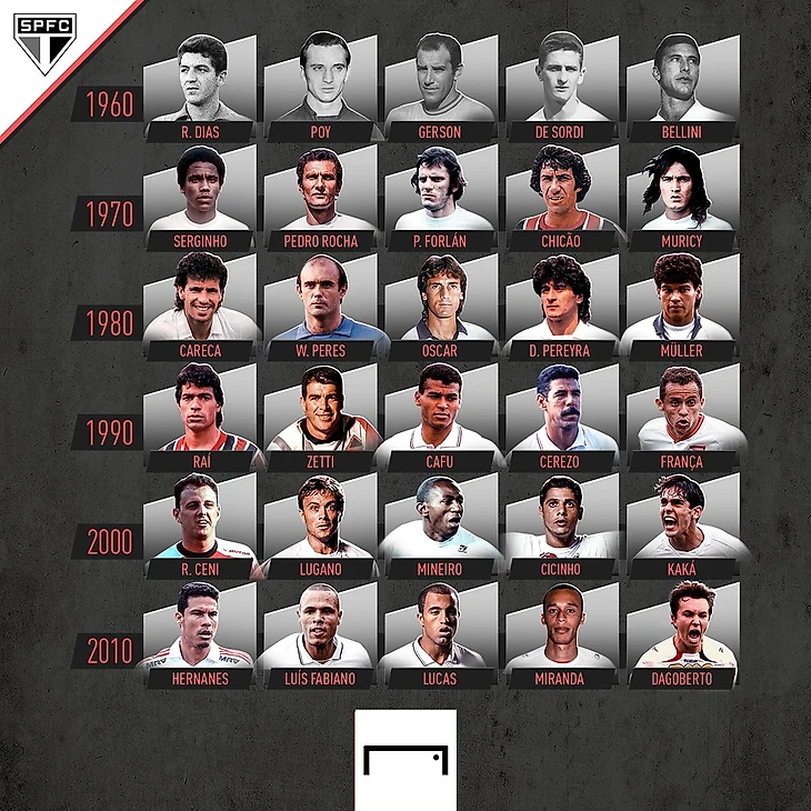 Бразильский портал Goal.com провел ревизию бразильских легенд и расставил их по декадам в каждом клубе-гранде. Не более 5. По мне некоторые списки весьма спорные. И наглядно показывают падение уровня Бразилейрао в последние 15 лет...