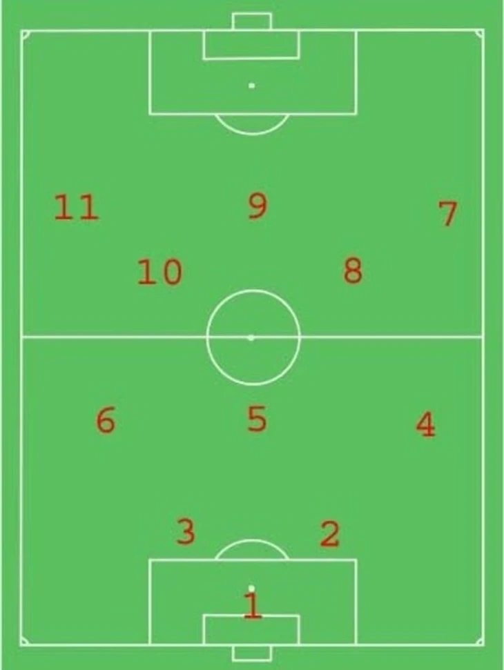 Настолько сильным было ощущение, что такие манипуляции каким–то образом мешают тому, что было естественным, что, когда в 1939 году ФА сделала обязательной нумерацию футболок, они указывали, что номера должны быть распределены так, как описано выше, то есть, как если бы каждая команда играла по системе 2-3-5. Это, конечно, объясняет, почему «центр-хав» до сих пор используется как синоним «центр-бека» в Британии, а также почему в те дни, когда у игроков не было номеров, команды, играющие по схеме 4-4-2, обычно выстраивались в линию, читая справа налево, от вратаря до нападающих, 1; 2, 5, 6, 3; 7, 4, 8, 11; 9, 10.